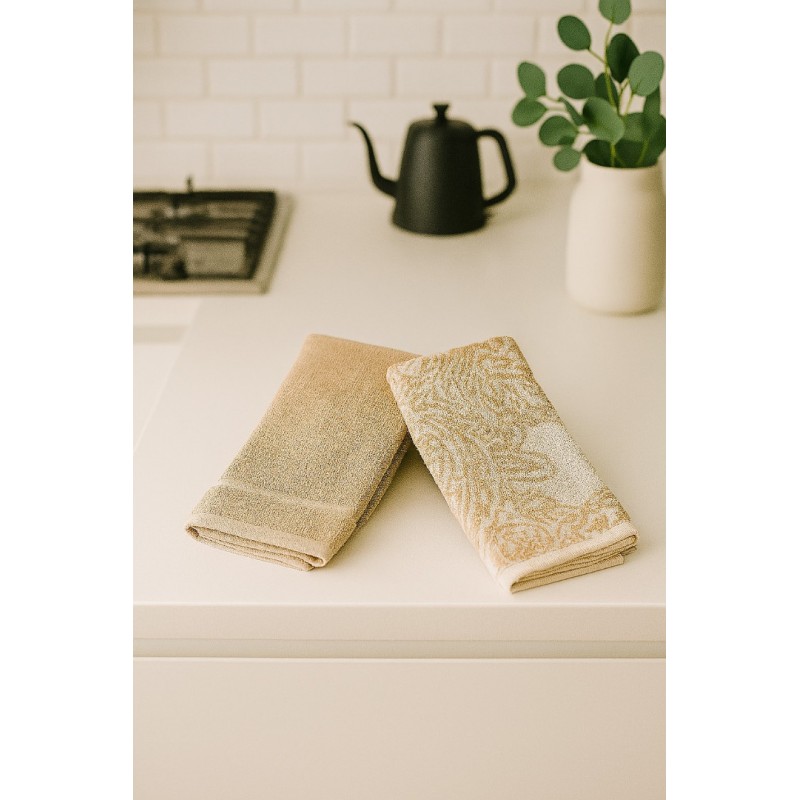 Transforme a cozinha com este elegante pack de dois panos de felpo em tons de bege, perfeitos para dar um toque de charme e funcionalidade ao seu dia a dia. Com um design moderno e harmonioso, um pano apresenta um padrão gráfico geométrico, enquanto o outro destaca uma mensagem inspiradora – ideal para trazer boas vibrações à sua rotina.