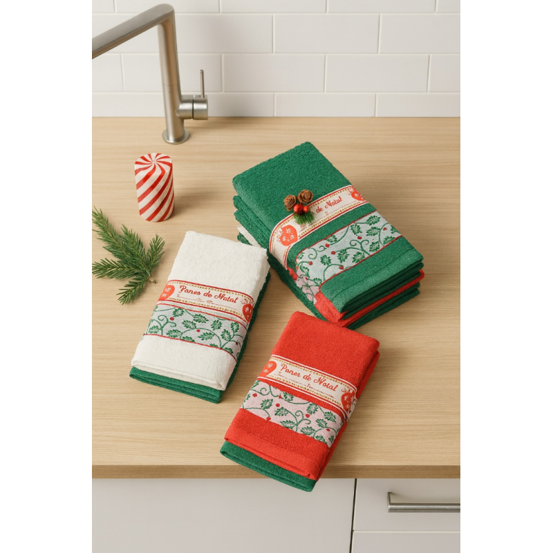 Panos de Cozinha Natalícios em FelpoTraga o espírito do Natal para a cozinha com estes panos encantadores!Confeccionados em felpo 100% algodão, oferecem alta absorção, toque suave e excelente durabilidade — perfeitos nesta época festiva.